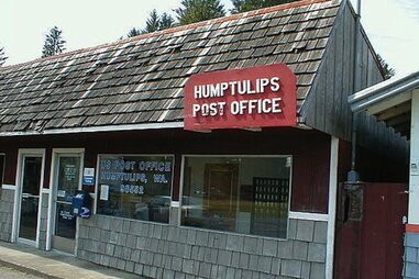 Humptulips?! Told you information technology was virtually to get juvenile... Merely, don't worry, the western Washington town got its name from a totally-innocent-sounding Native American phrase meaning "hard to pole". Interpret that phrase as you will, only information technology'southward likely our Native American friends were referring to the difficulty of parking their canoes in this town.
